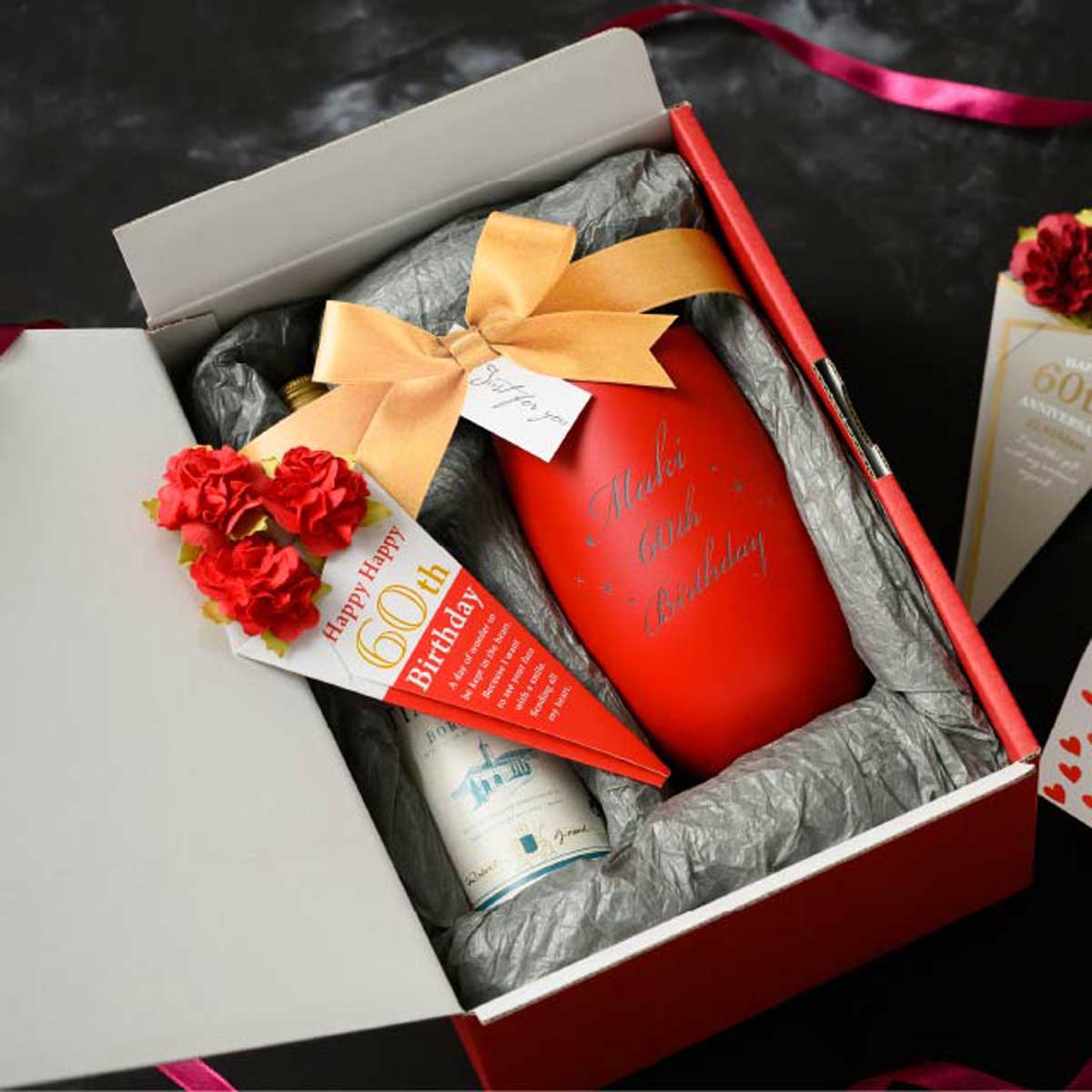 母の日のプレゼントラッピングにおすすめのエンジ色の無地ギフトボックス。