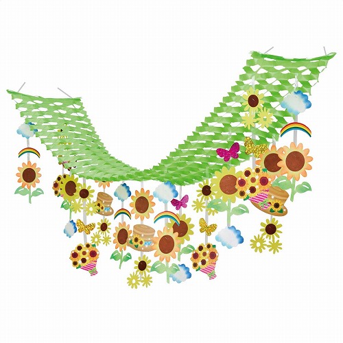 夏のにぎやかな店内装飾におすすめのひまわりモチーフの天井飾りです。