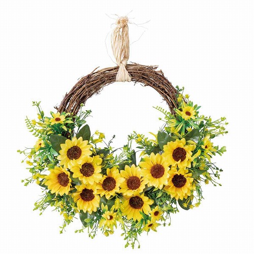 ★55-16-1-1 ナチュラルサンフラワー(ひまわり)造花リース50cm