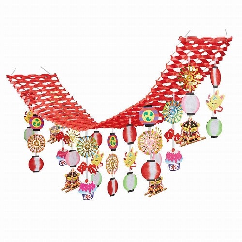 花火や祭り提灯のにぎやかなプリーツハンガー。