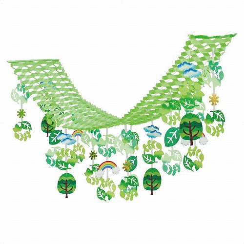 夏の店内装飾におすすめの新緑モチーフの天井飾りです。