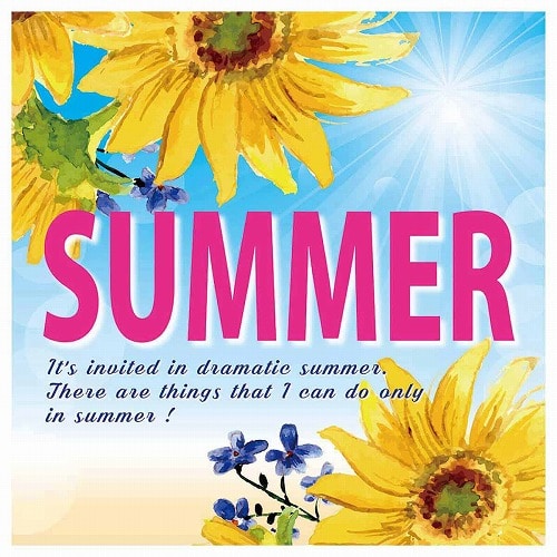 夏気分を盛り上げる青い空と輝く太陽、元気なひまわり柄は夏らしさを演出し、季節感を演出することで来店意欲を高めます。