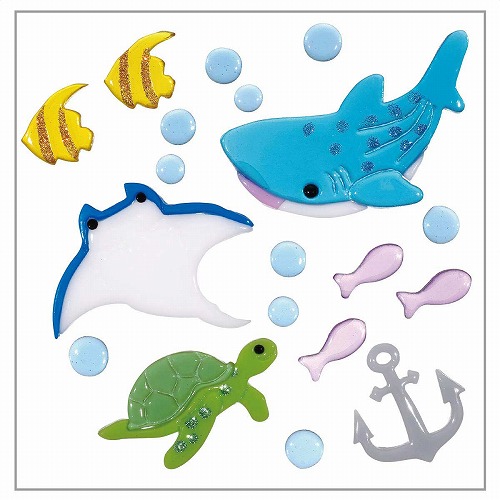 ショーウィンドウや窓ガラス・鏡に簡単に貼ったりはがしたりができるグミデコを飾って夏らしい店舗ディスプレイに。