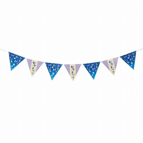 「七夕まつり」と星空のデザインの三角フラッグです。
