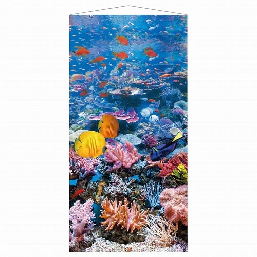 海のタペストリーで手軽に夏のさわやかな店内装飾に模様替え。