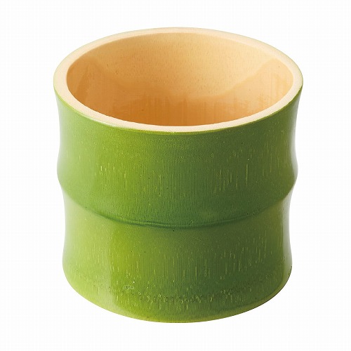竹(bamboo)で作られた円筒(cylinder)形状の容器です。