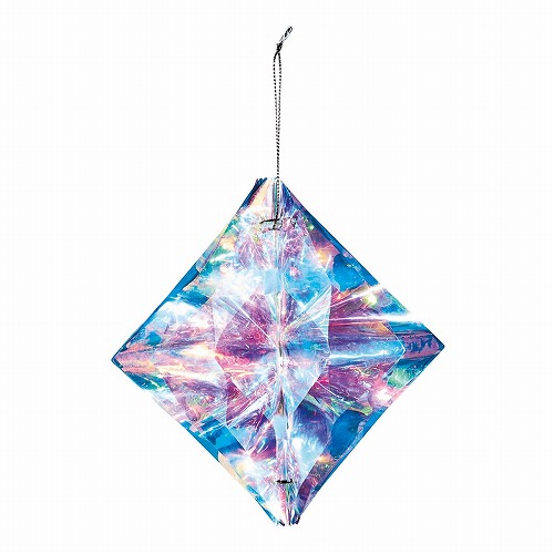 透明感のあるオーロラ調のダイヤ形の吊り下げ飾りです。