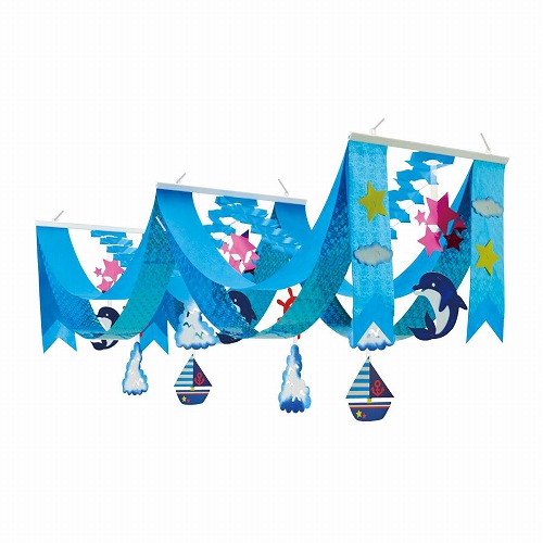 天井から楽しい飾りを吊るして夏の風情を感じさせます。