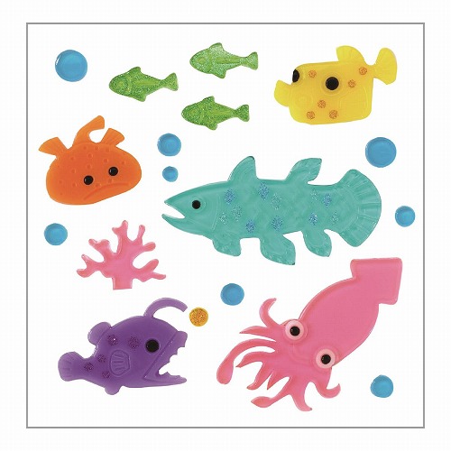 ショーウィンドウや窓ガラス・鏡に簡単に貼ったりはがしたりができるグミデコを飾って夏らしい店舗ディスプレイに。